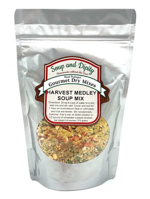 Green & yellow split peas, pearled barley, lentils, white & brown rice with alphabet pasta and lots of garden veggies, creates this hearty medley.